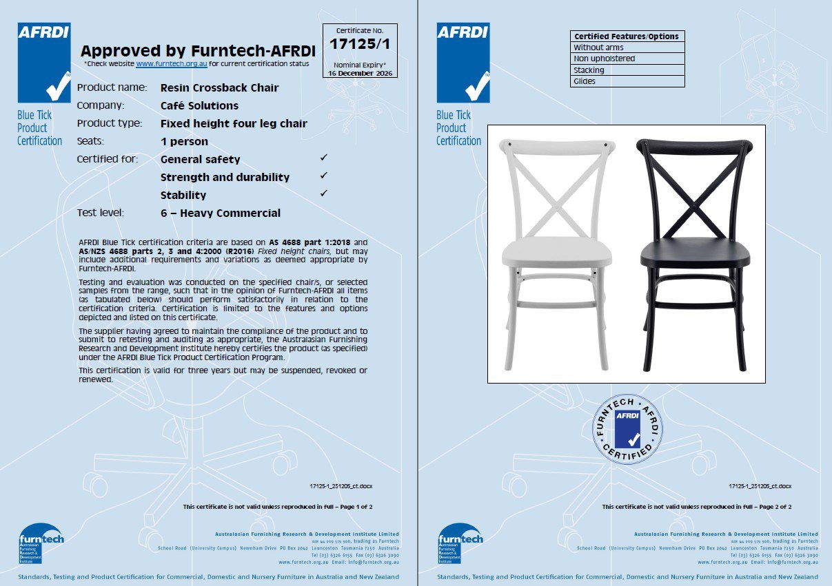 This chair has been tested at AS/NZS 6488 Level 6 at commercial level. View the certificate here.